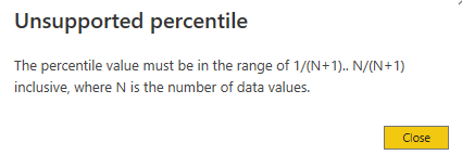 Community Forum Thread: https://community.powerbi.com/t5/Desktop/Percentile-exc-Error/m-p/637337