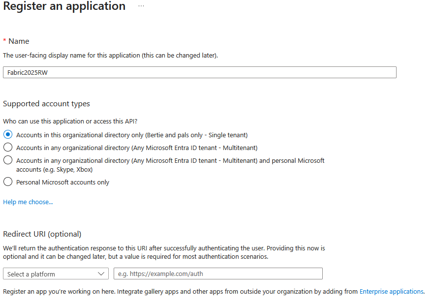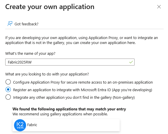 I’ll name it Fabric2025RW (RW stands for Read-Write)