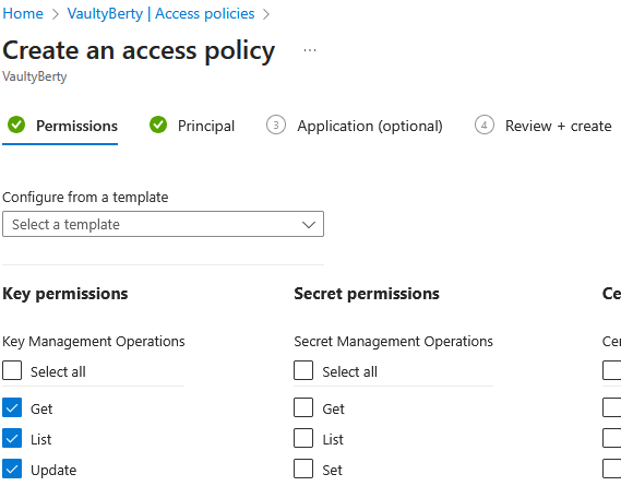 The Service Principal (via a Group): For more advanced unattended scenarios, like an Azure Function that needs to access the vault, you would add the PBAdmins security group to the access policy, also with Get and List permissions.